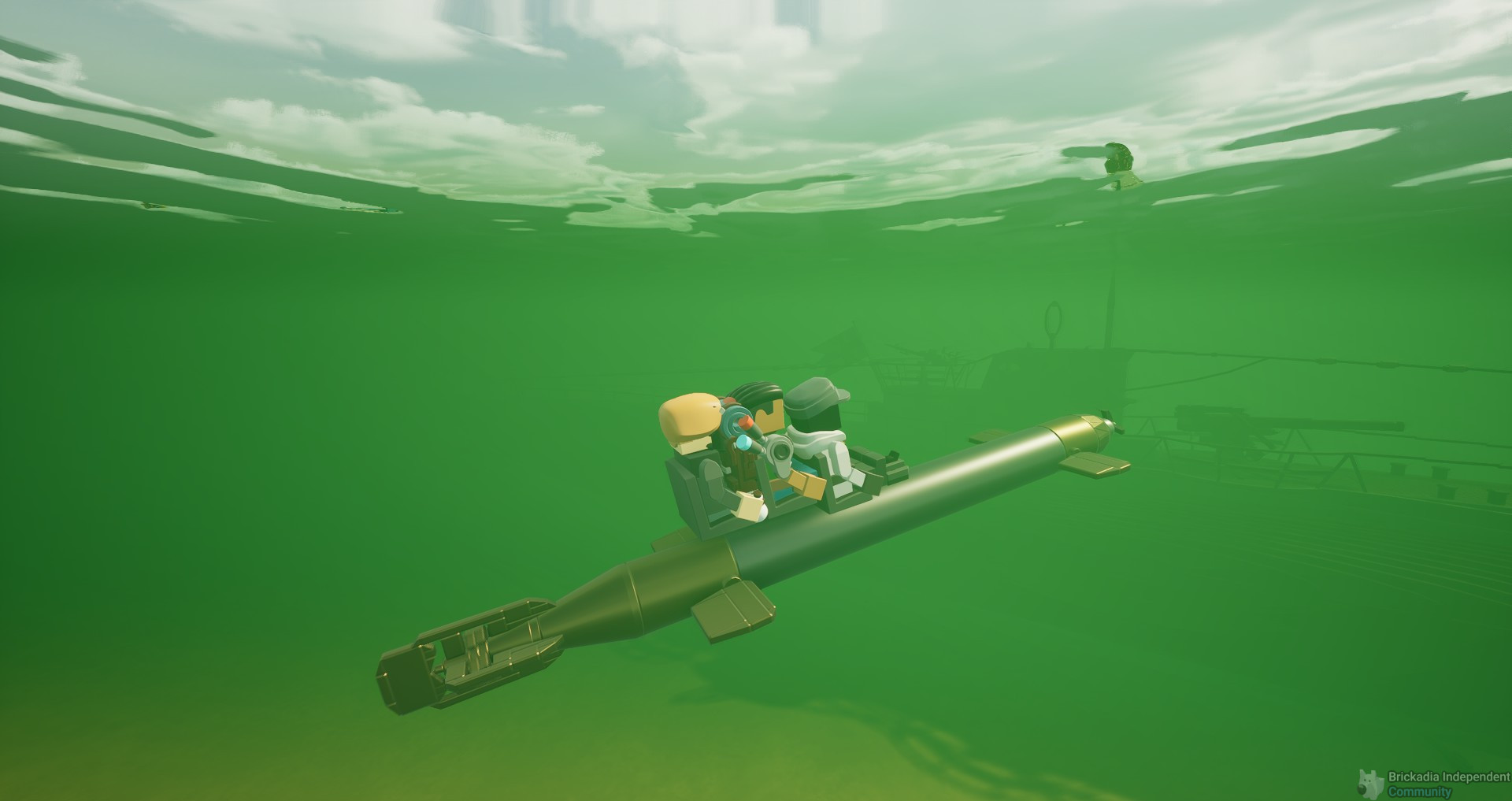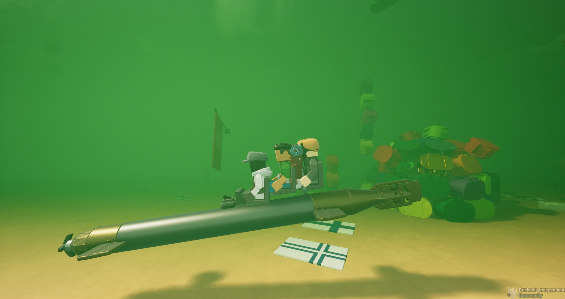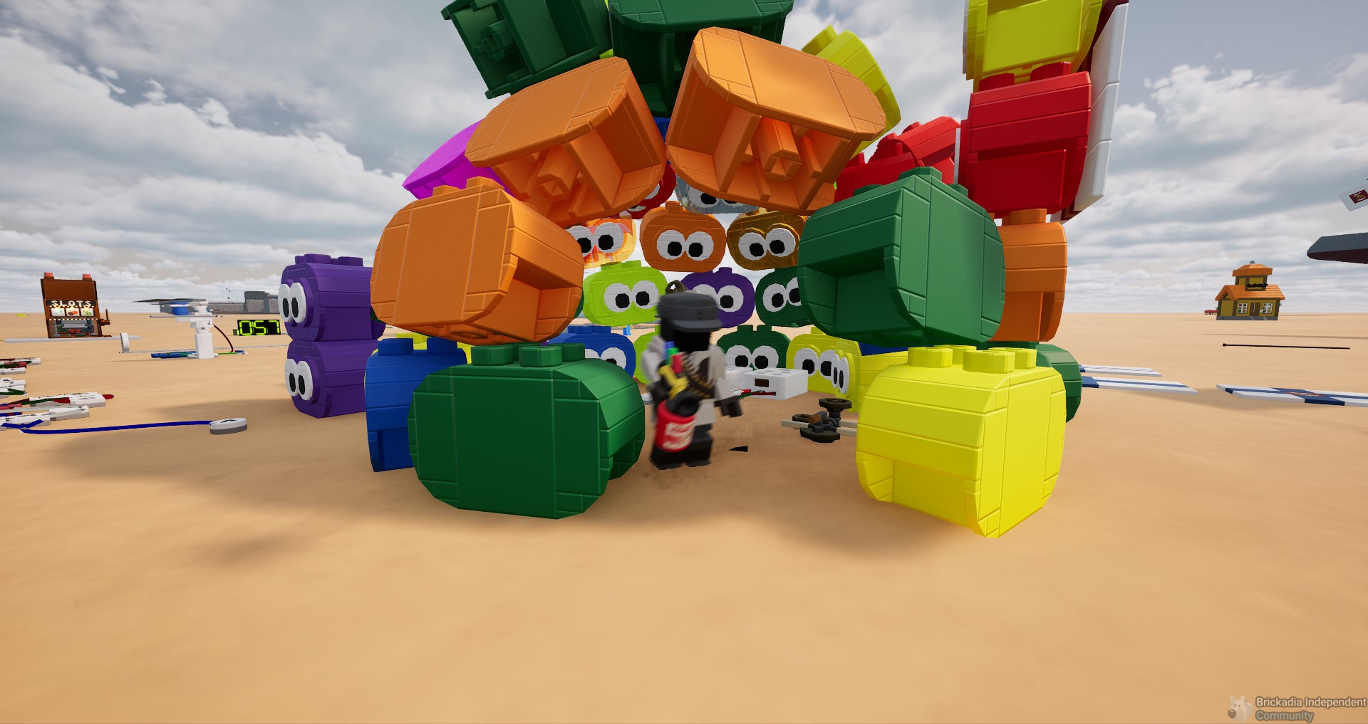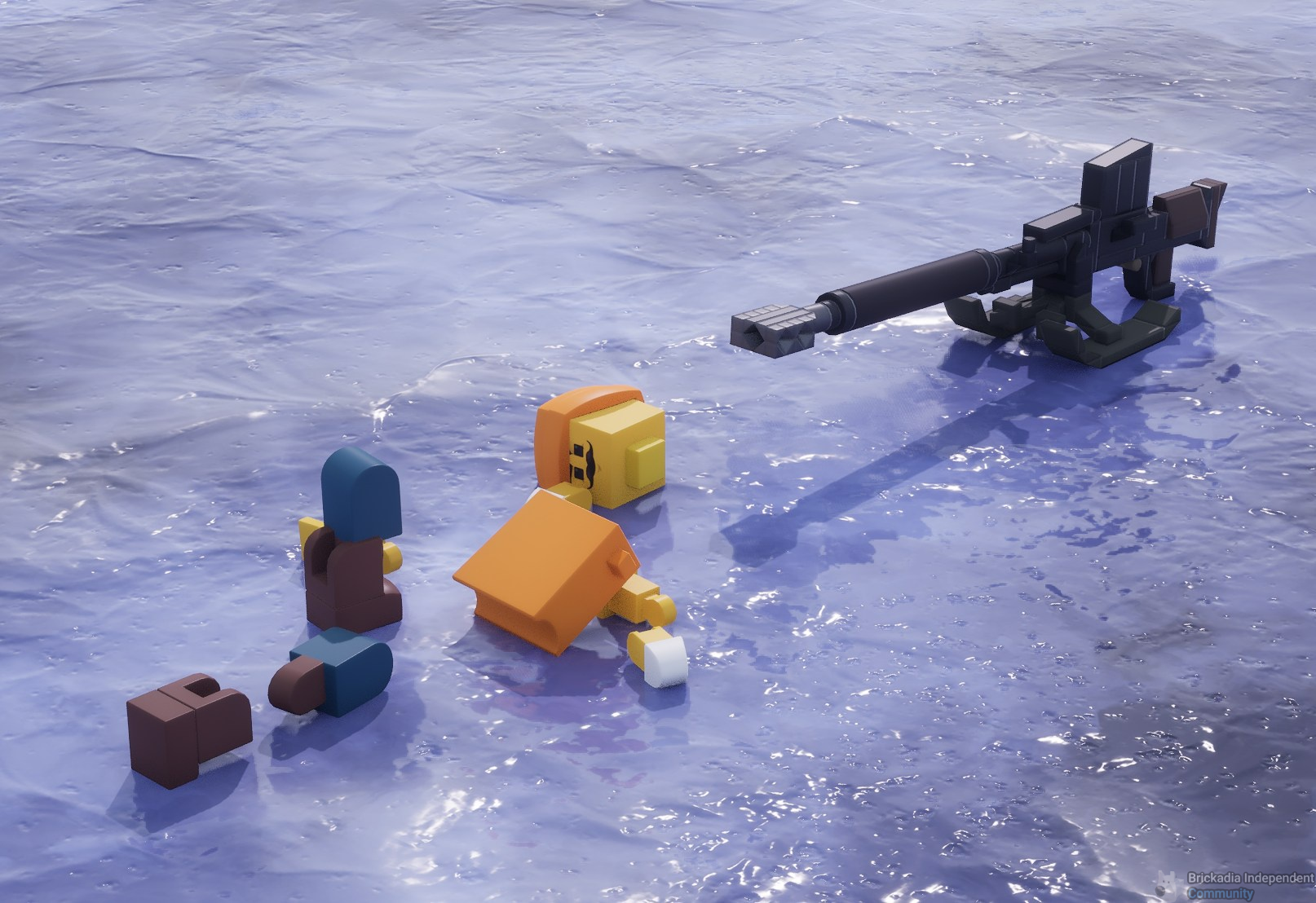 Unsuccessfully trying to reinvent skiing – doesn't work in this form since we cannot yet have invisible wheels or adjust brick friction, not to mention the lack of an appropriate stance